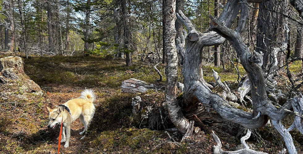 Frøya elsker snuseturer - turer der hun kan lukte på alt som trenger å luktes på:-) Altså det meste. Og jeg kan nyte naturen rundt meg - lytte, lukte og se.
